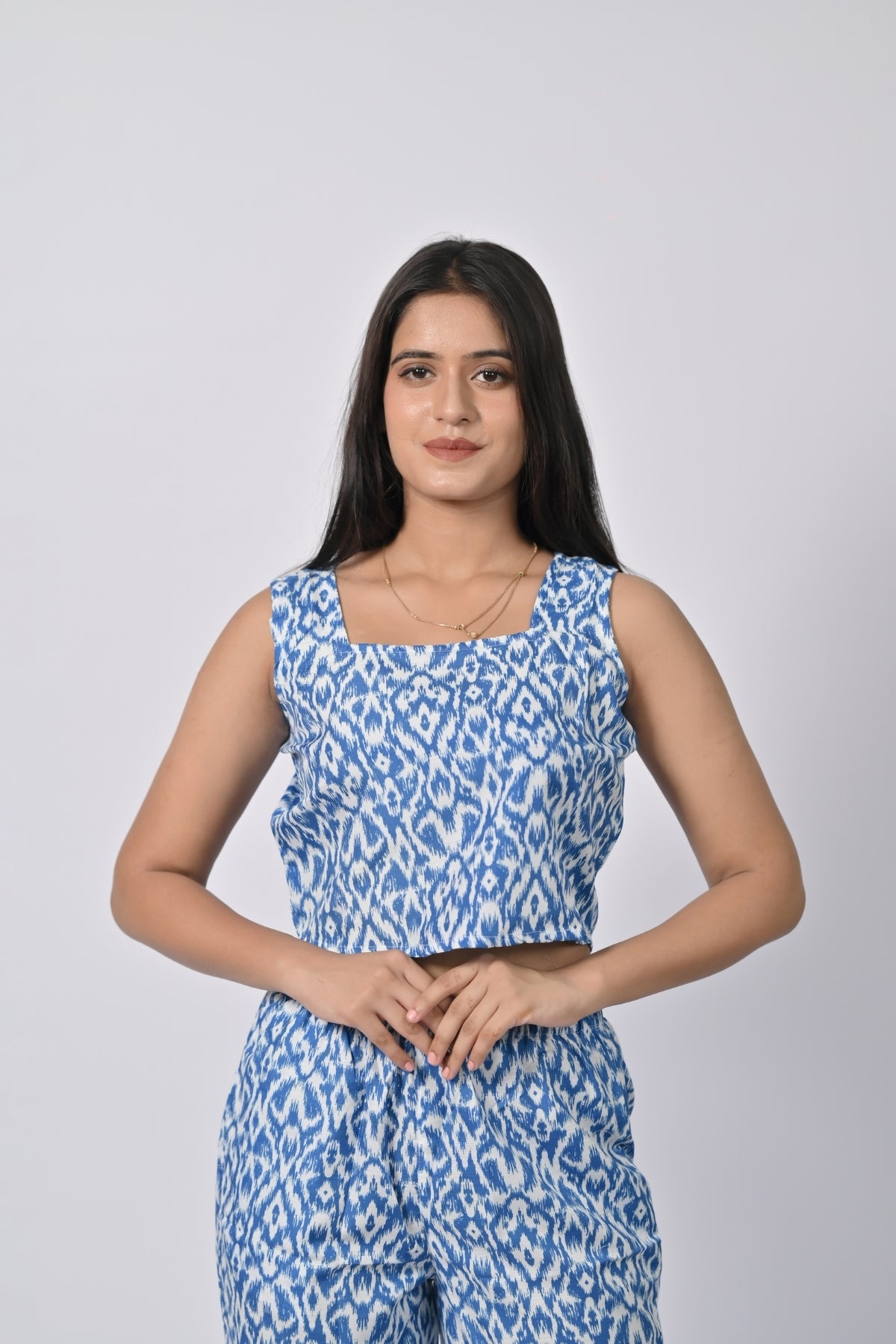 | This chic floral crop top and pants set is perfect for a casual, stylish look. The ruffled crop top adds a fun and flirty touch, while the matching pants with an adjustable drawstring waist ensure comfort and ease. The vibrant floral pattern enhances the playful, relaxed vibe of the outfit, making it ideal for warm days and casual outings. |