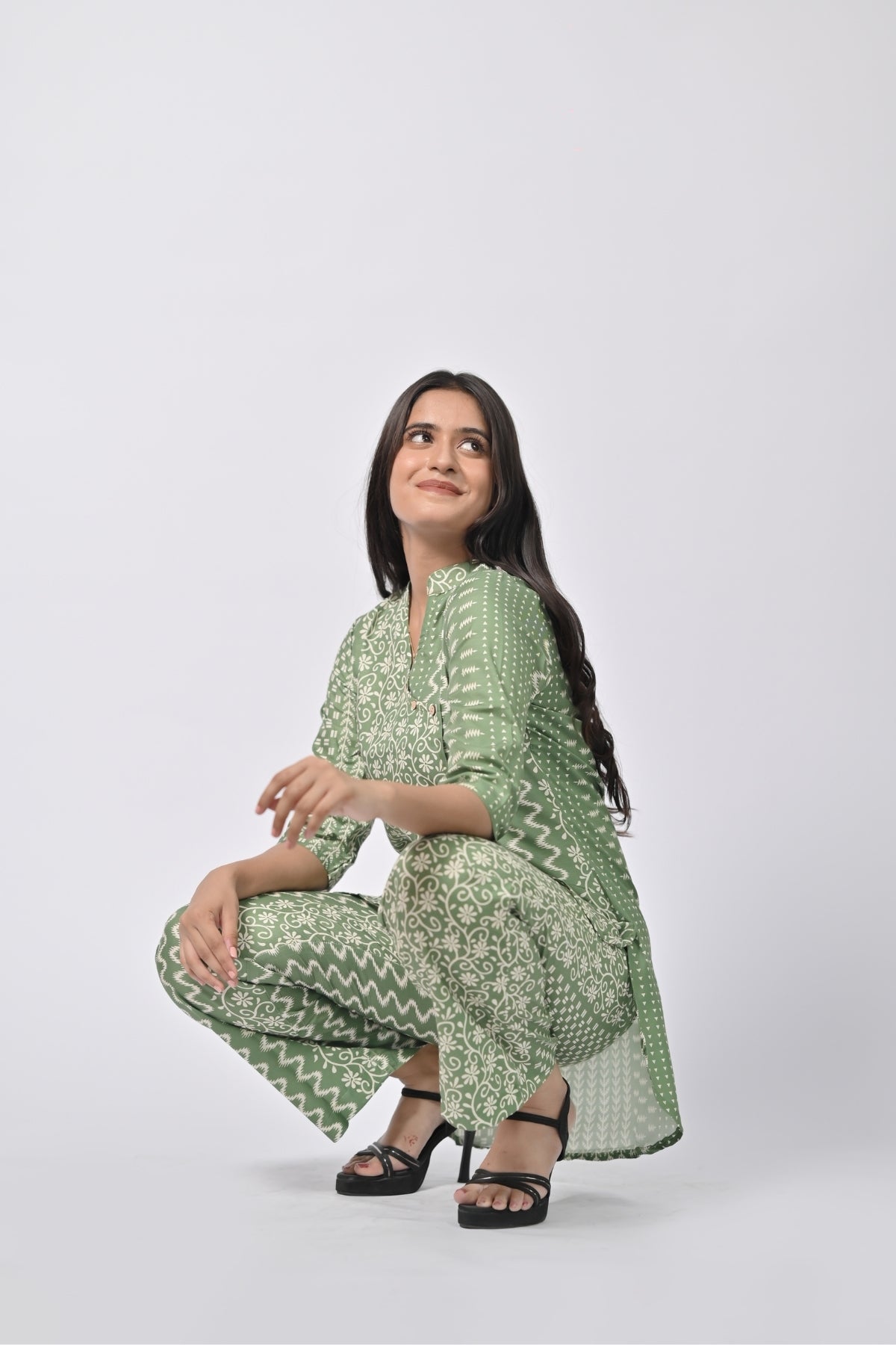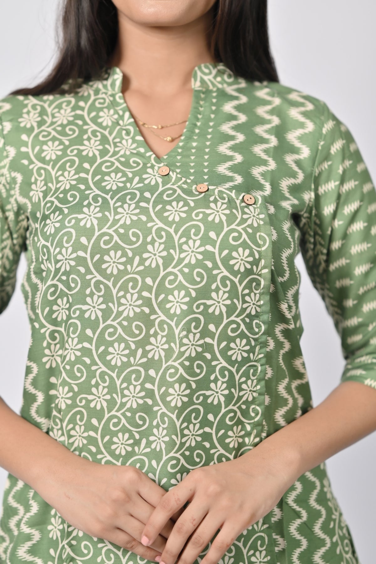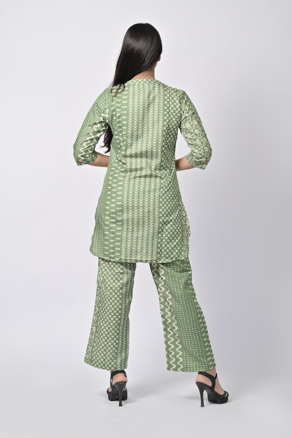 | This chic green floral printed tunic and pants set combines comfort with style. Made from breathable fabric, it features a flattering v-neck closure and a trendy, relaxed fit. Perfect for casual outings or as loungewear, the set offers both style and comfort with its soft and lightweight material. Whether paired with sandals or heels, this versatile outfit is a great addition to any wardrobe. |